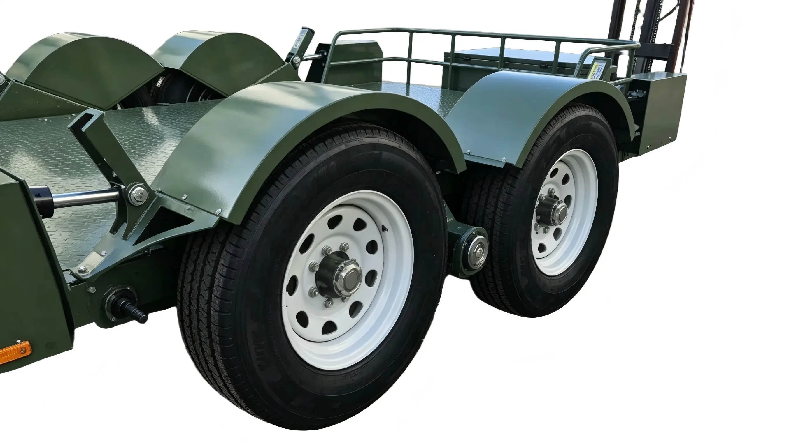 Menampilkan tata letak simetris sumbu ganda dengan gandar tugas berat, trailer ini memastikan distribusi beban yang merata. Kapasitasnya jauh melebihi model poros tunggal serupa, tidak menunjukkan deformasi yang signifikan bahkan pada beban penuh 5 ton. Dilengkapi dengan suspensi pegas daun dan ban lebar, mobil ini menawarkan penyerapan guncangan yang sangat baik—memastikan pengendaraan berkecepatan tinggi yang stabil tanpa bergoyang atau terbentur, sekaligus dengan mudah menangani medan kasar dan lokasi konstruksi.
